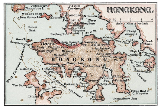 1900年香港島油畫布重製舊地圖