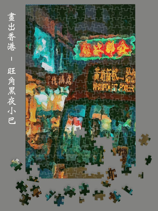 旺角黑夜小巴油畫風拼圖