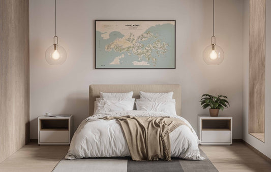 1874年新安縣香港島九龍油畫布重製舊地圖